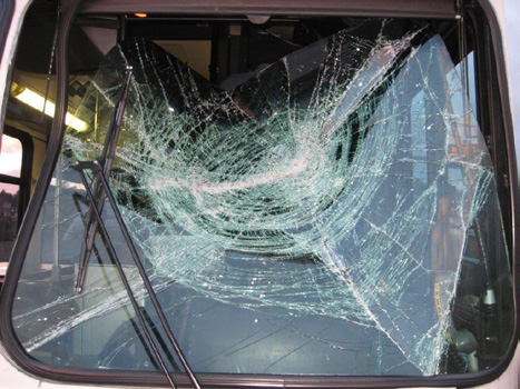 On March 19, while Metro Transit Operator George Armstrong was driving Route 550 eastbound on I-90, a large pipe smashed into the windshield of his bus, sending glass fragments into his face and eyes.