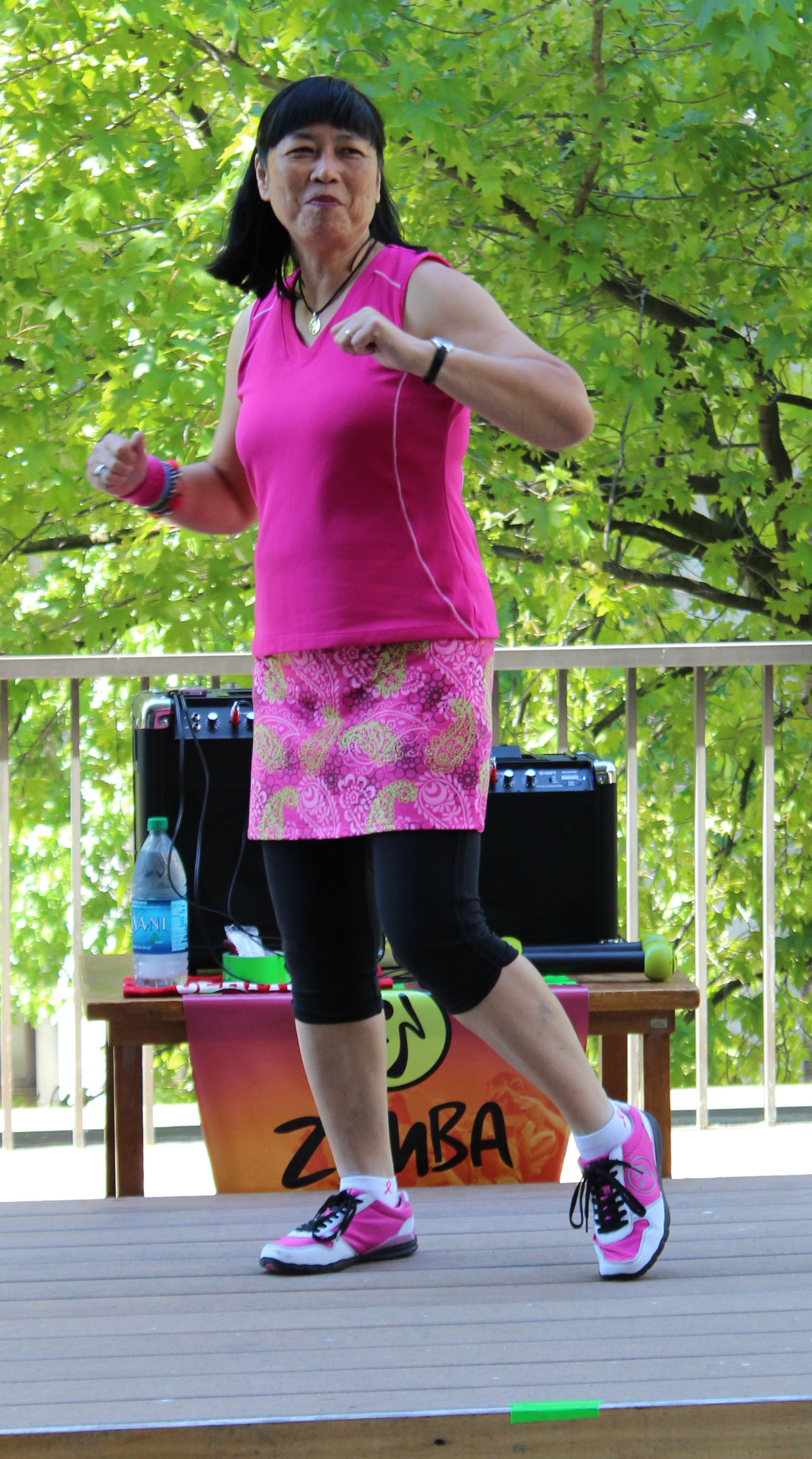 Usually her Zumba classes are held in the Chinook building’s Activity Center (on Level A in the Northeast corner of the building), but for the past two summers she has been able to hold some classes outside on the Administrative building’s plaza. The first year she did an outdoor class she had anywhere from 10-30 people participating.