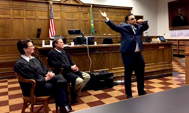 Public defender Natasha Coleman recently asked King County Superior Judge Cheryl Carey if graduates from the King County Adult Diversion Drug Court could share a talent at their graduation ceremony. The judge agreed, and the first such performance happened Wednesday, when rapper Shelby Allen – a 22-year-old man and one of Natasha’s clients – shared his story and his appreciation for Drug Court through a rap he wrote. KCTV, KING5 and KIRO radio were on hand to observe him. Natasha said Shelby was thrilled. “It was the best ceremony I have ever attended. Everyone loved Shelby. He put on sunglasses just before he started to rap and had everyone in the audience singing and rapping with him,” Natasha said.