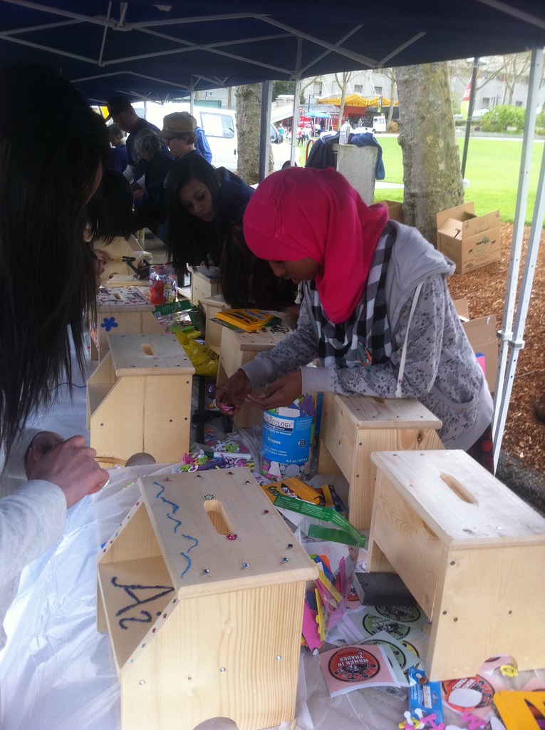 Decorating step stools at the Women in Trades Fair