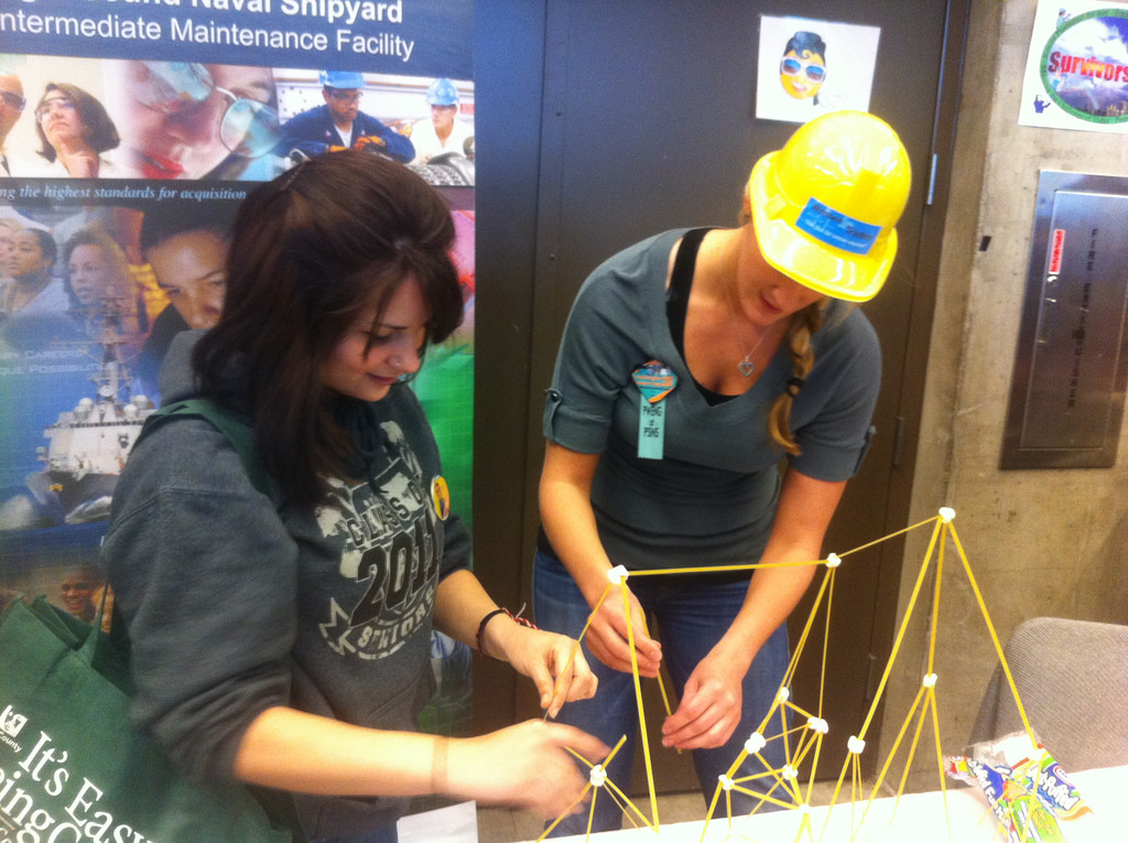 Visitors take part in hands-on activities at the Women in Trades Fair