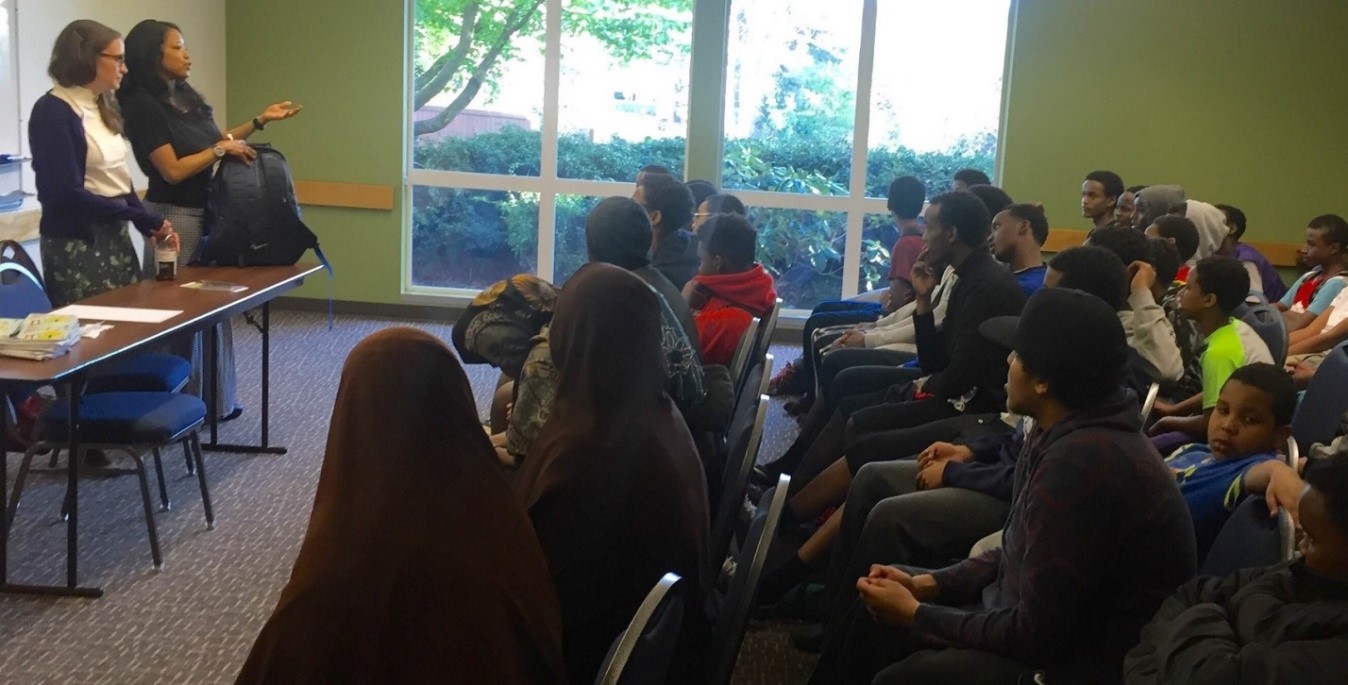 Bringing students to shadow her at work and speaking at events have been two of Twyla’s most fruitful volunteer experiences. She and another attorney recently spoke with sixty students and members of the Somali community at the Tukwila Community Center to explain legal actions and individual rights.