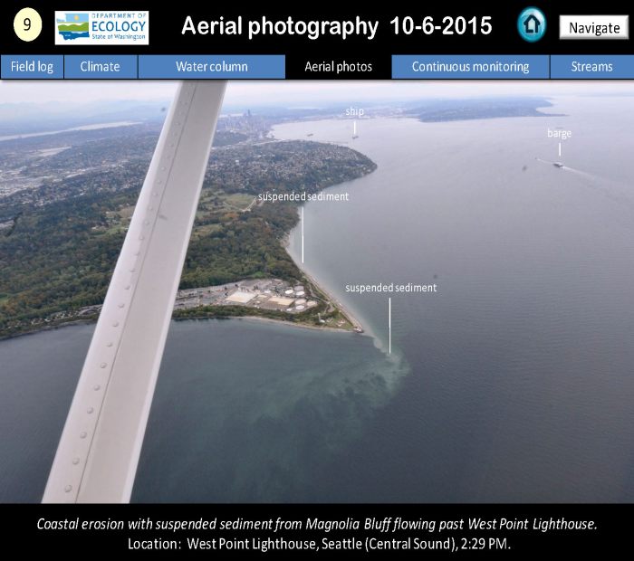 Unfortunately, that was untrue and the power of the photo is in how it was wrongly described. At King County’s request, the Times clarified its reporting on March 20 to reflect that what its readers were actually seeing is sediment. The sediment plume regularly builds up around West Point in the shallow beach area, south of the lighthouse.