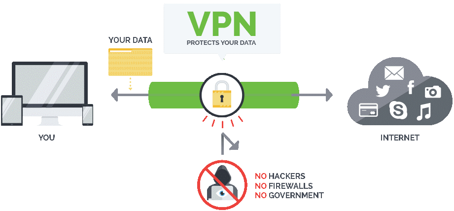 VPN is like an encrypted tunnel between you and the internet. You link straight to your VPN (your ISP will see the connection), then all internet browsing is directed through VPN’s servers and blocks third parties from snooping.