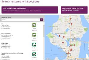 Full inspection histories of all King County restaurants have been available online since 2001. For the past 16 years, inspection results could be searched on a website that, we admit, was starting to show its age. That’s why we partnered with King County Information Technology (KCIT) to create a restaurant inspection search tool to go along with our brand new Food Safety Rating System. We have always valued making information available to the public and this new search tool makes it even easier to find information to make informed decisions when eating out.