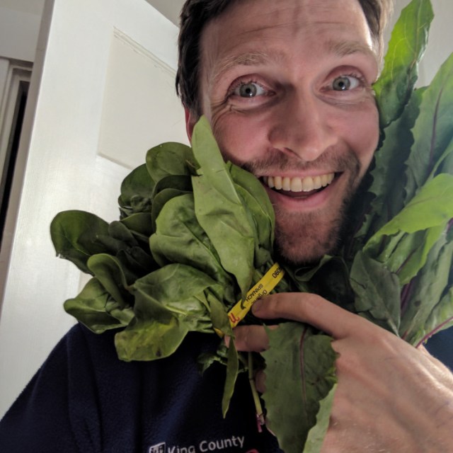 Each Thursday this summer, King County Metro operator Chris Cappelletti packs up a fresh box of produce at Atlantic/Central base and buses or bikes it home. The local veggies come from farmers with Pike Place Market Farm to Go CSA (Community Supported Agriculture), a partner in King County’s CSA @Work program. We asked Chris to talk about why he is a CSA subscriber and the other healthy habits that make him tick.