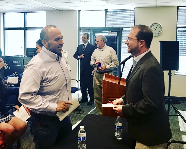 5- Dr. Roberto Dondisch-Glowinski speaking with employee Jose Reyna