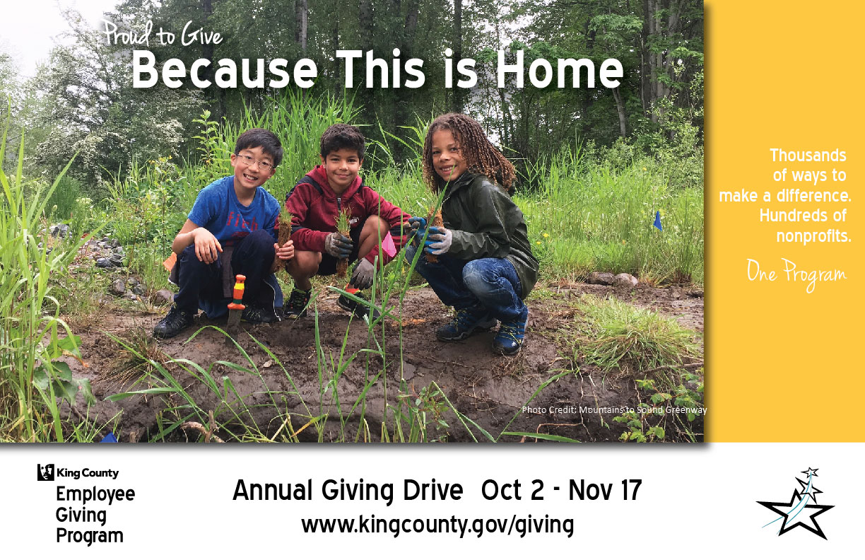 The two departments leading the way are Department of Transportation (DOT) with $35,121.37 and King County Sheriff’s Office (KCSO) with $22,842.87. This year’s goal is $2 million. Every donation made through the Employee Giving Program is tax deductible.