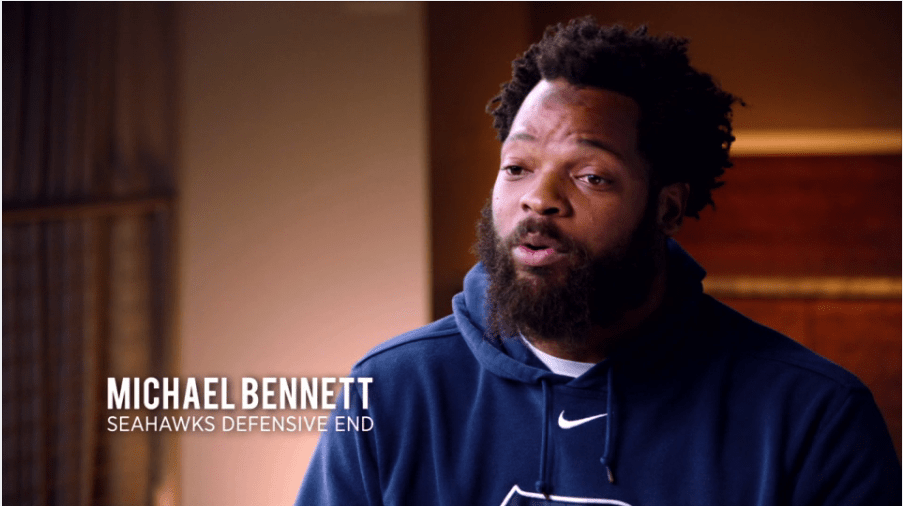 “It’s our responsibility as human beings to leave this world in a better situation for our kids. And that’s what the real legacy of all this is,” Michael Bennett, Seahawk defensive end, number 72.