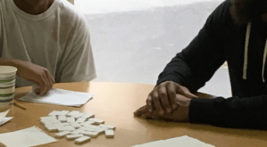 On this November visit, Bennett’s unique ability to mentor and bond with the youth in one-on-one interactions is on full display. ESPN’s footage captured the clever way Bennett is able to coach the kids through his lesson on managing distractions and setting goals. What ESPN didn’t show was how Bennett’s relaxed and even playful demeanor puts the entire room at ease, even with the TV camera and the gaggle of adult volunteers and staffers clogging the unit. Bennett is so relaxed, he even takes off his shoes to settle in for a game of dominoes with two boys.