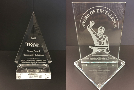 The We Are 1 HIV PrEP (Pre-Exposure Prophylaxis) social marketing campaign, which was spearheaded by Public Health – Seattle & King County, received both a regional and a national award from the Public Relations Society of America (PRSA). The multi-media HIV prevention campaign, which took place in King , Pierce, and Snohomish County, received a regional Totem Award from PRSA Puget Sound for its creativity and accomplishment within the public relations industry in the Puget Sound area. This award also recognizes projects and programs that demonstrate excellence in public relations, and that rise above the competition. The campaign then went on to receive a national Silver Anvil Award of Excellence in the “Integrated Communications Government” category, which recognizes the very best in the United States public relations industry, and honors agencies and organizations that have successfully addressed a contemporary public relations issue with exemplary profession, skill, creativity, and resourcefulness.