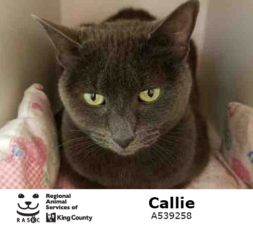 You can find out more about Callie on our website, at kingcounty.gov/AdoptAPet, or meet her in person at the King County Pet Adoption Center in Kent.