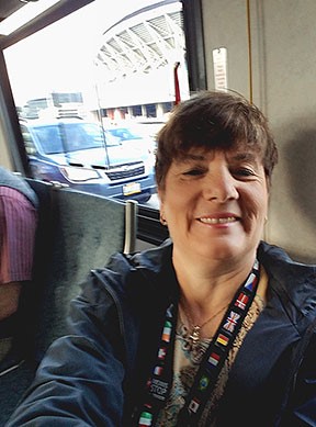Tanzer shot a selfie as her bus passed one of her favorite transit destinations — Century Link Field