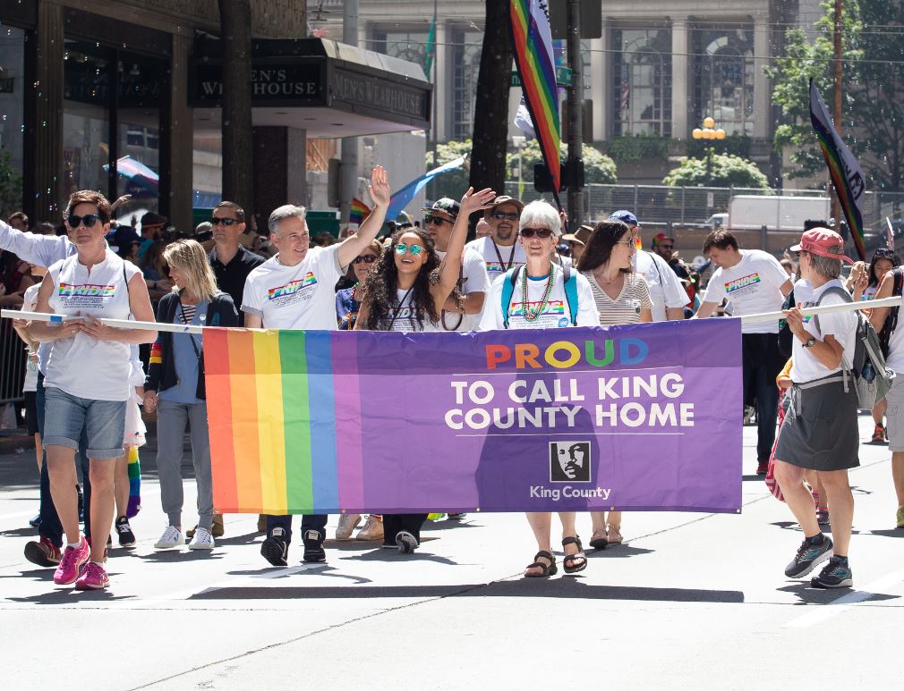 Hundreds of King County employees and their friends and family joined King County Executive Dow Constantine to celebrate diversity, fairness, and justice at the Seattle Pride Parade Sunday.