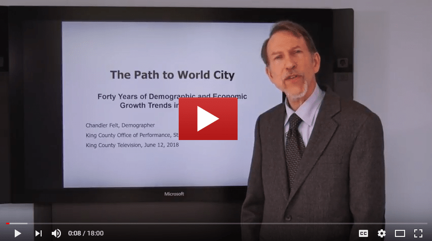 The cranes dotted across the Seattle skyline may lead you to believe that King County has only begun to experience rapid growth within the past decade. However, in a new video, King County Demographer Chandler Felt discusses how the County has been booming and diversifying for the past 40 years.