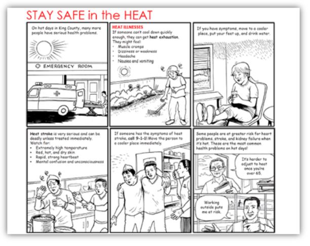 Check out the comics above and in the original Public Health post to learn more about who is at risk and what to do to stay safe in the heat! You can also get more information at kingcounty.gov/BeatTheHeat.