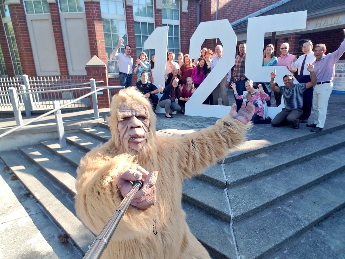 Hey, hey! It’s our quasquicentennial (125th) birthday and @ELGL50‘s #CityHallSelfie Day. #Issaquah125 #LegendaryIssaquah #SasquatchSelfie