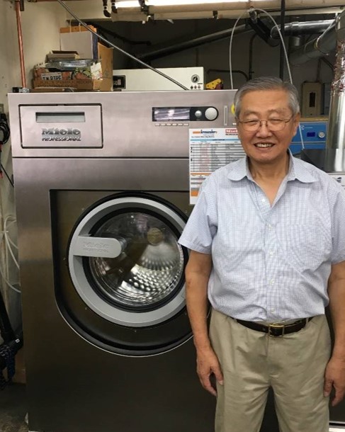 Pictured: Sun Cleaners and an employee with the new grant funded technology.