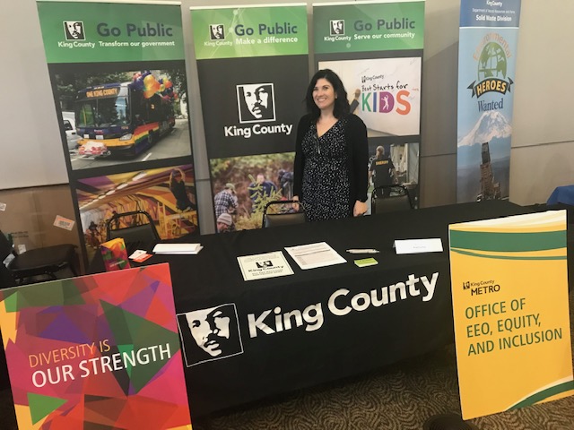 During the career fair Julie gave a 15 minute presentation open to all event goers on the many services that King County provides and having representation from so many departments allowed attendees to hear what each team does and about the vast array of career opportunities the County offers.