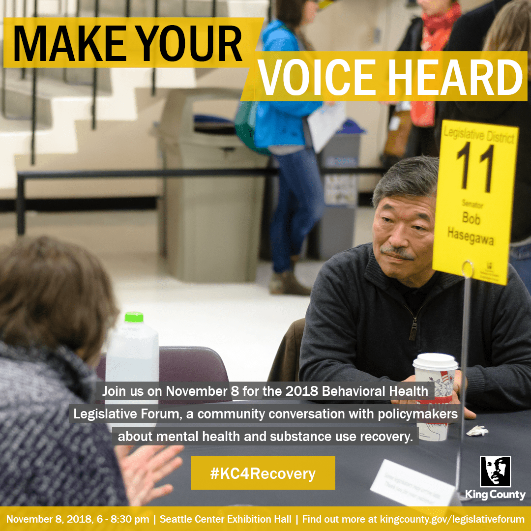 Are you interested in learning more about funding and services for mental health and substance use disorders? Come to the 2018 Behavioral Health Legislative Forum at Seattle Center on November 8.