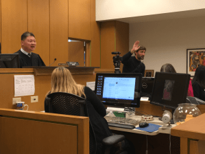 Pictured: French journalist Romain Bolzinger following a participant through the Drug Court process.