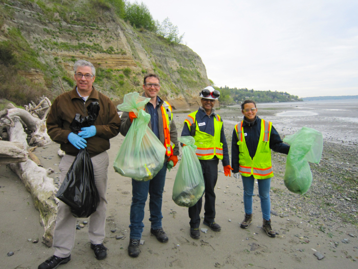 This Earth Day, a determined group of engineers, scientists, lab technicians, technical trainers, managers and more stormed the shore in Discovery Park picking up litter and debris.