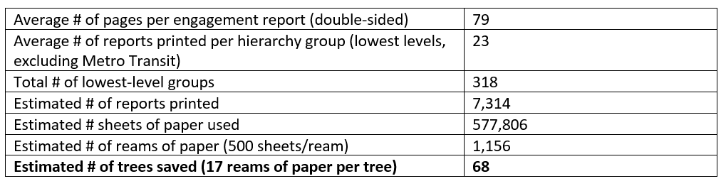 Making this shift to online reports saves approximately half a million pages of paper from being printed each year – and that’s a conservative estimate!