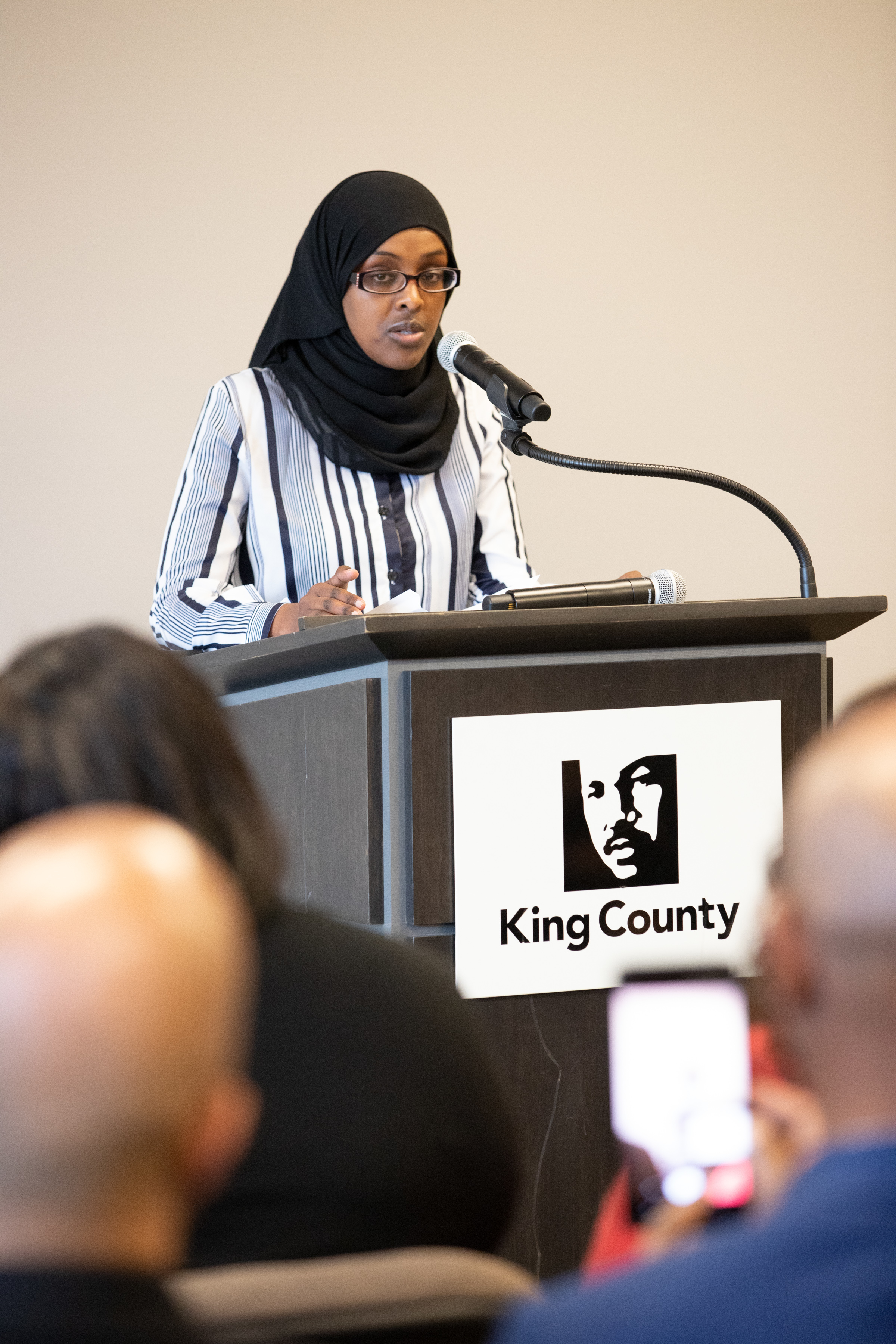Pictured: Ladna Farah speaking at the 2019 King County Bridge Fellowship graduation.