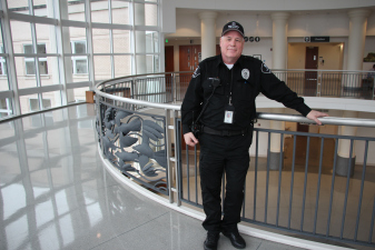 “This job’s good for me,” Brown said. “I’m an expert with a pistol but I’m more approachable without a weapon.” Security officers don’t carry weapons at King County.