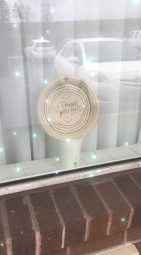 Pictured: A thank you note from the Kent Isolation/Quarantine site that a community member posted on their window.