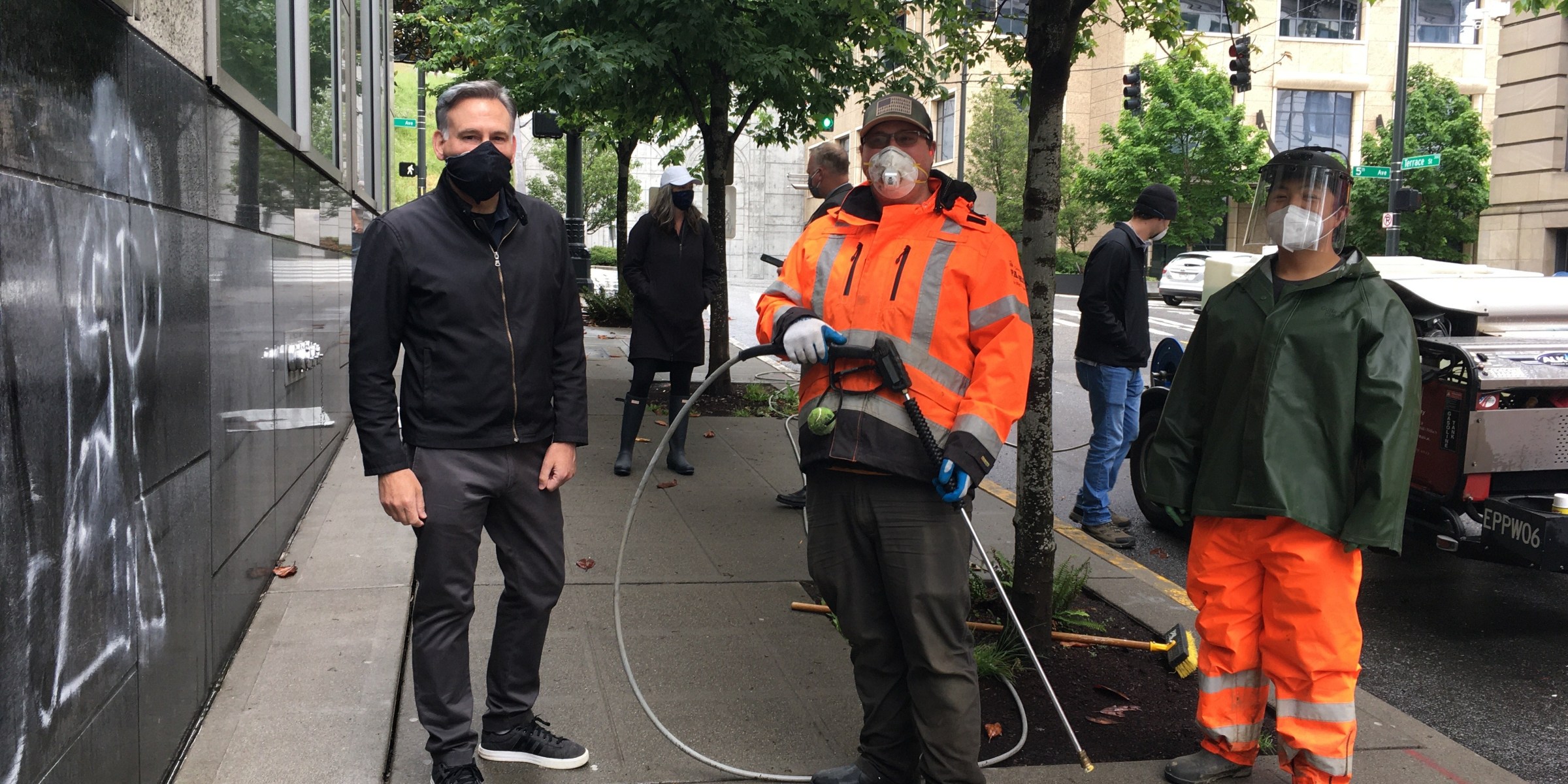 “I was in downtown Seattle this morning to personally thank King County employees and volunteers who are repairing our facilities that were damaged by violent opportunists who hijacked last night’s peaceful protest against racial injustice. Some of our facilities – a childcare center, a homeless shelter, a homeless day center, bus stops – had broken windows or were spray-painted. Yet thanks to the rapid response by our employees and volunteers, we are on track to reopen all our downtown services tomorrow morning. The resiliency and dedication of our staff and partners means we can continue to offer the services that keep the people of King County safe and healthy even during a global pandemic. I encourage us to unite as a region for a lasting change that will bring America closer to the promise of our County’s namesake.”