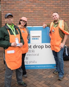 Most voters wait until Election Day to return their ballots and drop boxes are often busiest in the last few hours of voting. We need your help to provide customer service and assistance to voters using this last opportunity to return their ballots. Sign up and join us for a fun and fulfilling experience helping your neighbors experience the excitement and community of casting their ballots.