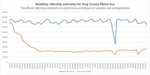 Metro analyzed preliminary extrapolations to create an unofficial estimate of weekly ridership, which remains lower compared to a year ago but shows early signs of recovery.