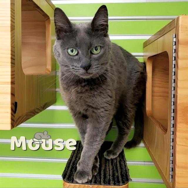 Hi! My name is Mouse and I am available for adoption. Generally, I’m a nervous kitty and I like to hide in the back of my kennel. But if you go slow and give me little scratches, I’m super duper friendly! With that being said, if you give me lots of awesome hidey spots at my new home I will be even friendlier because I will feel safer! My personality color is BLUE. I am a gentle and loving cat who likes to take things slow. I may get nervous in new situations, so I am looking for a family who understands that I might need some time to warm up. Once I get to know you, I will be a very devoted friend!