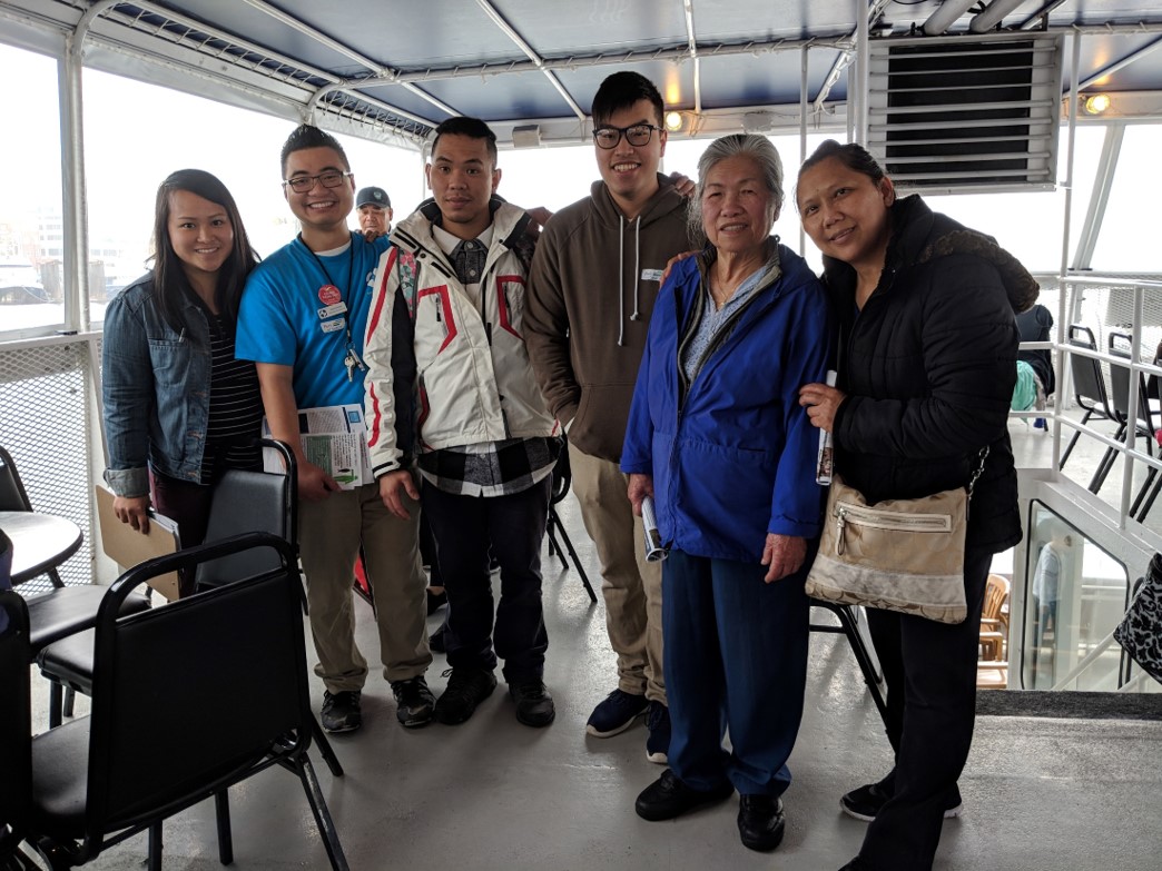 Pictured: Khanh Ho, far left, with the Vietnamese Community Health Advocates on a boat tour outreach of the Duwamish River in 2018.