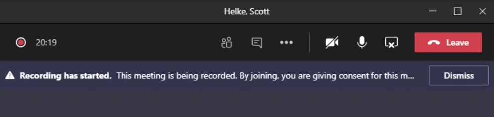 - Just as in Skype, when you’re on a computer and a meeting or a call is being recorded, a banner will appear across the top of your meeting window. Look for it!