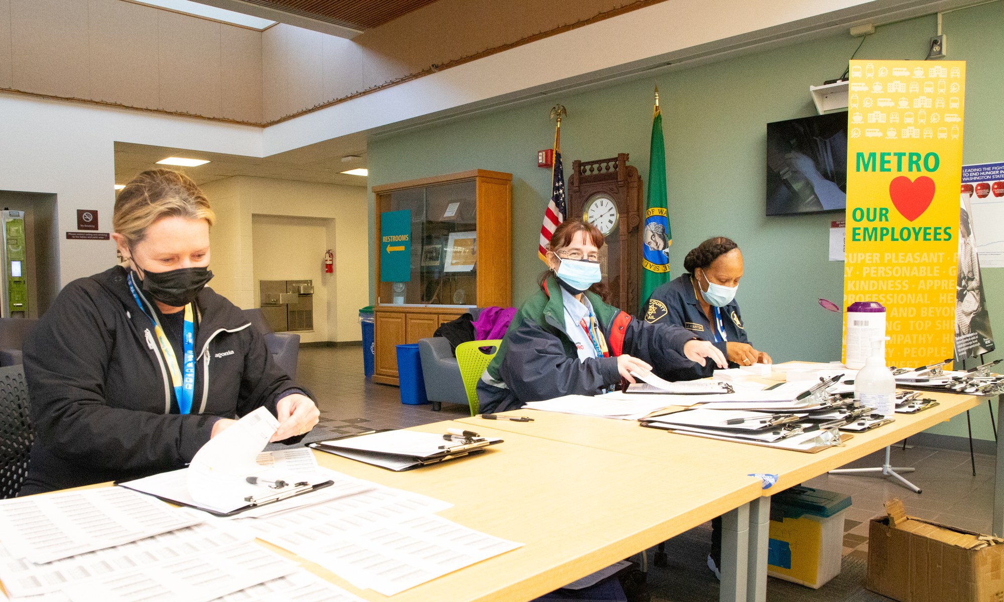 Metro’s Wellness Manager, Sam Souffront, worked tirelessly with Public Health, providing guidance, education, and support to “Metro Wellness Champions” — employees who visited worksites to assist in educating, answering, or directing staff to places where they could find accurate vaccine information. Public Health also provided virtual education through their Speakers Bureau and set up educational resources for staff with experts from Fred Hutchinson. Many Public Health vaccine partners such as Discovery Health, Pliable, University of Washington Medicine, and Virginia Mason Franciscan Health staffed several clinics during a variety of work shifts to meet employees in their workspace.