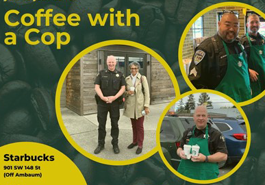 On Monday, May 9, the King County Sheriff’s Office, in partnership with Starbucks and the Burien Police Department, hosted Coffee with a Cop. The event was a success and well-received by the community.