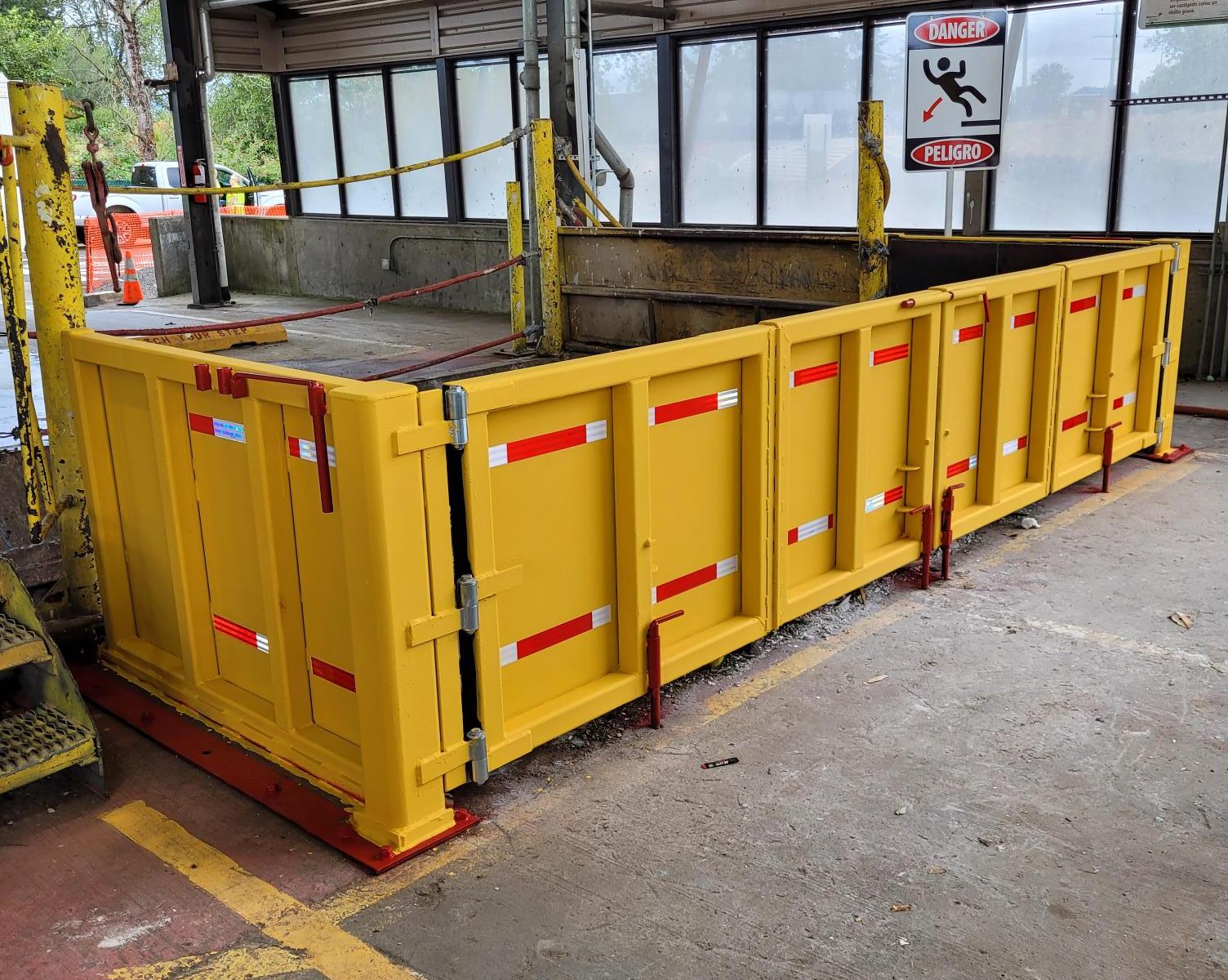 Henry adds that the next iteration of the prototype fall protection box design will feature gates that open for commercial haulers and be able to be easily moved for maintenance projects team accessibility.