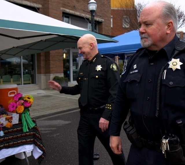 Recently, Undersheriff Jesse Anderson joined Detective Hayden for a stroll through the Burien Farmers Market, where they interacted with community members and business owners. They all expressed their gratitude for the difference Det. Hayden made with his presence on foot patrol.