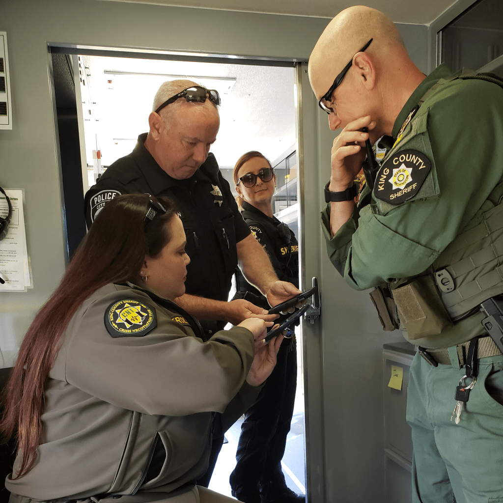Sgt. Speight shared about an event in Duvall where a person was having a mental episode. The local police had been called and found him banging on the door of a house with intent to harm his elderly parents inside. When the local police arrived, he ran off into the bushes with a gun.