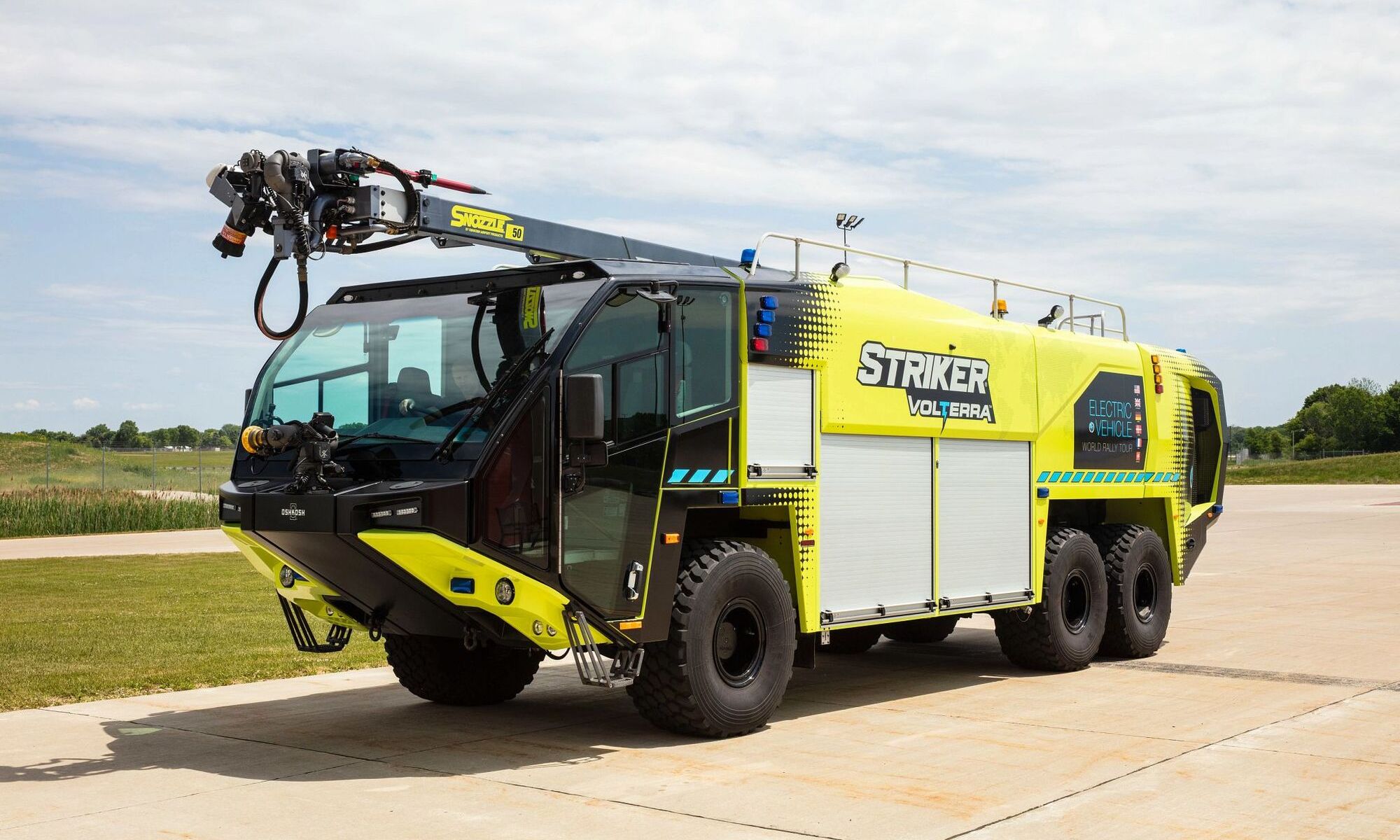 King County International Airport-Boeing Field (KCIA) will be the first airport in the nation to receive a Striker Volterra 6×6 Aircraft Rescue and Fire Fighting (ARFF) hybrid electric fire engine after finalizing purchase details with Oshkosh Airport Products, a division of Pierce Manufacturing Inc. The new rig complements the airport’s existing diesel-powered firefighting vehicles also made by Oshkosh Airport Products and will allow the airport to retire its oldest diesel fire truck.