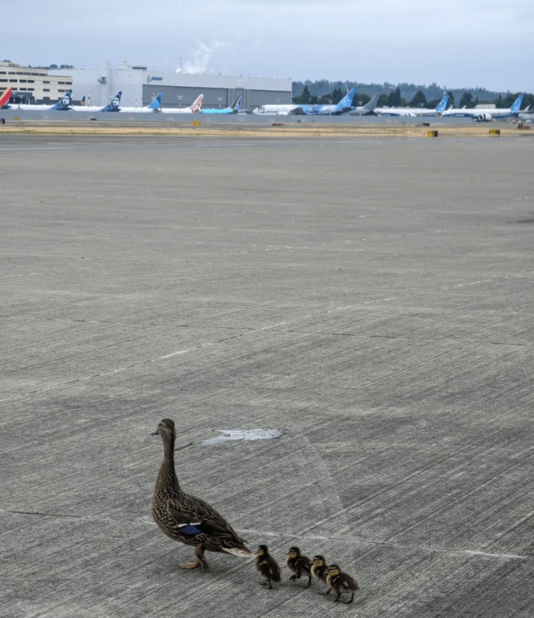 Employees at King County International Airport-Boeing Field recently rescued eight ducklings who had fallen into a shallow storm drain, reuniting all of them safely with their mother.