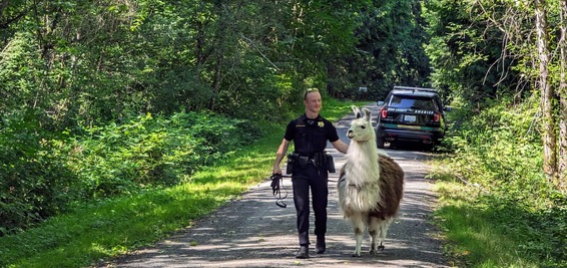 On July 15, the King County Sheriff’s Office (KCSO) Communications Center received a call from a delivery driver stating that he was unable to deliver a package due to a llama standing in the middle of the road and blocking traffic.