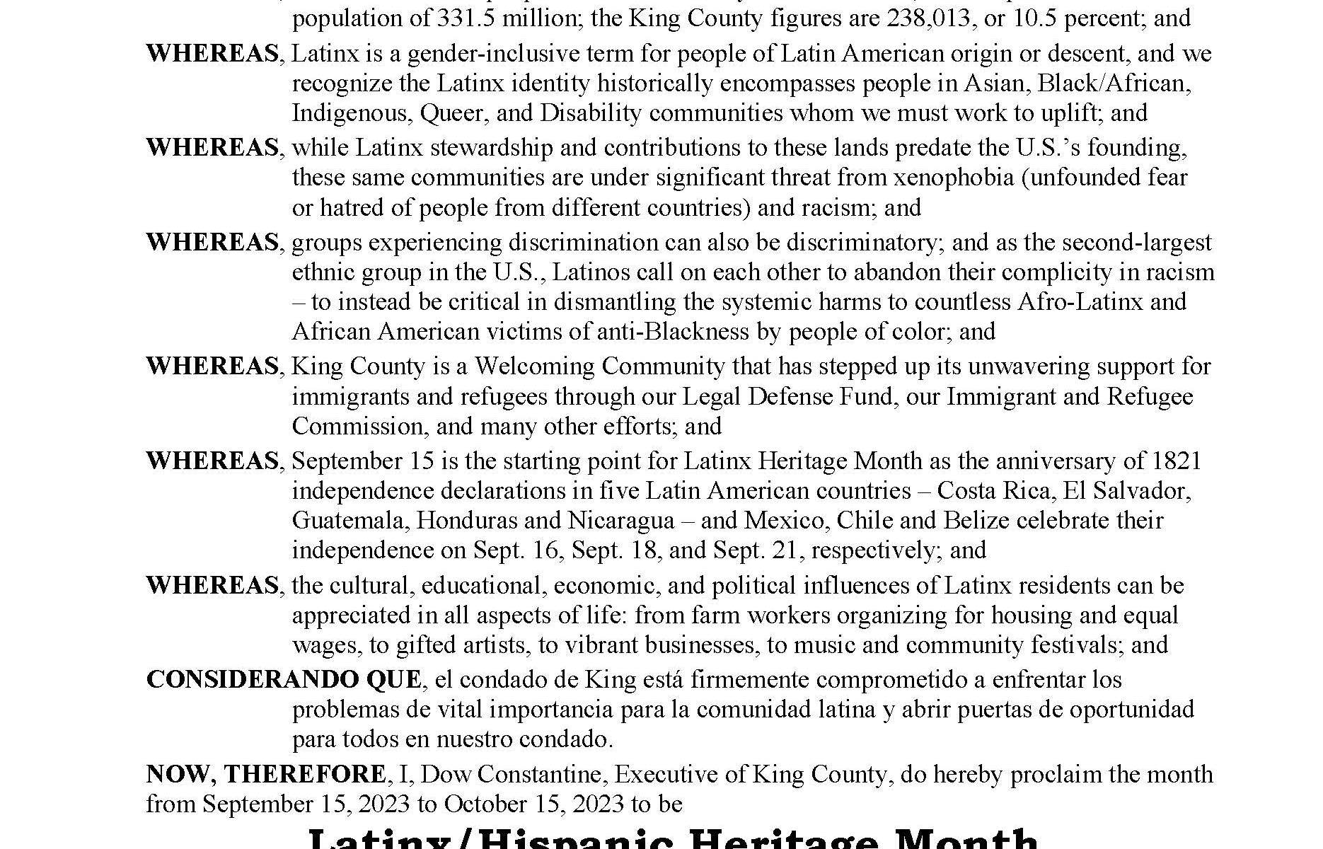Executive Constantine proclaims 2023 Latinx/Hispanic Heritage Month