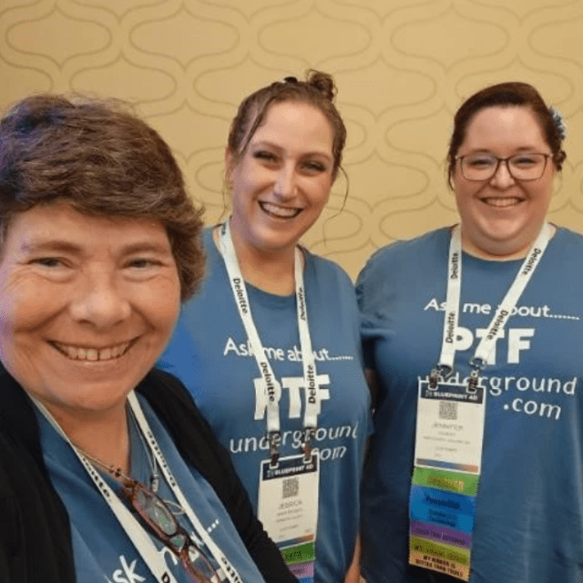 Pictured: Pam Ingram and Jessica Maistrovich, both from Hennepin County, Minnesota, and Jennifer Gilbert, QA Automation Engineer for PeopleSoft in the BRC.