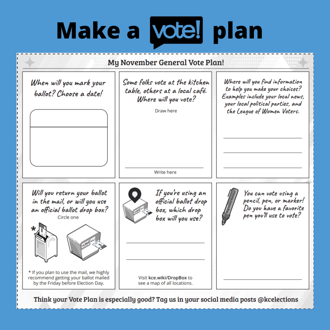 Do you have a vote plan? Research shows that voters who make a clear plan to vote are most likely to follow through and make their voices heard. Take a moment today to consider things like where you’ll vote, what pen you’ll use, and what resources you’ll use to research your choices.