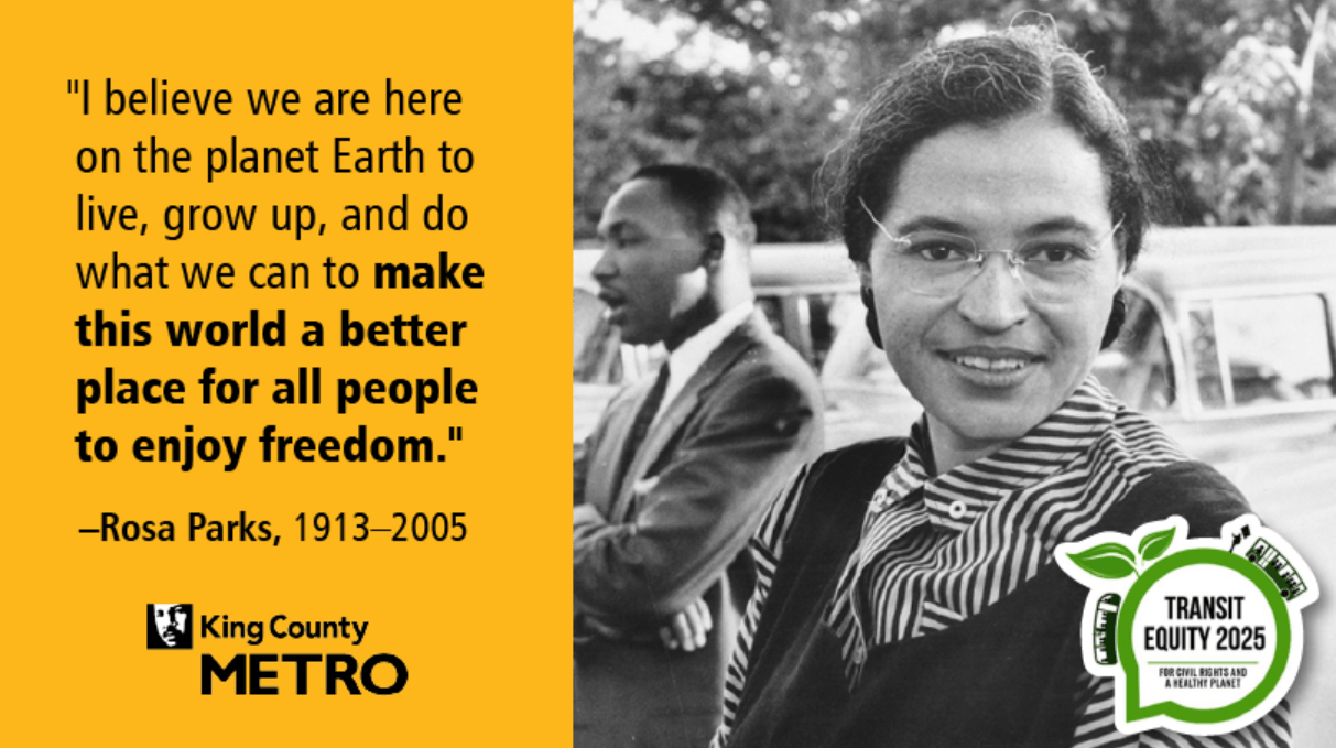 Observed annually on Feb. 4, Transit Equity Day also honors the birthday of Rosa Parks, whose courageous act of defiance on a Montgomery bus in 1955 became a turning point in the civil rights movement and a lasting symbol of the fight for transit equity. Read more.