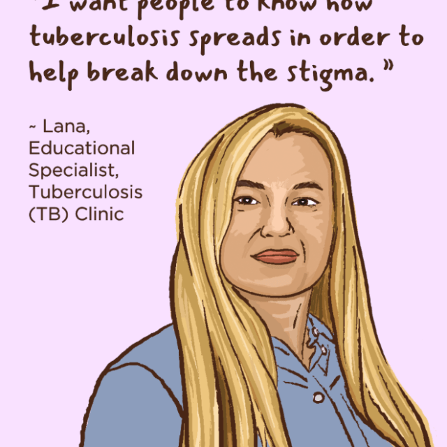 I’m a registered nurse and I work as an educational specialist for Public Health’s Tuberculosis (TB) Clinic. I share awareness about TB, how to get tested, and treatment options. We educate the community because TB is very stigmatized. Read more.