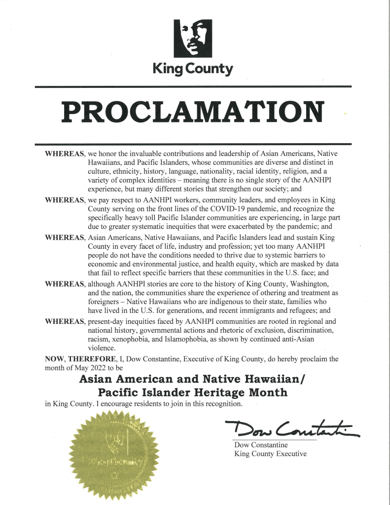 Executive Constantine proclaimes May as Asian American and Native Hawaiian/Pacific Islander Heritage Month